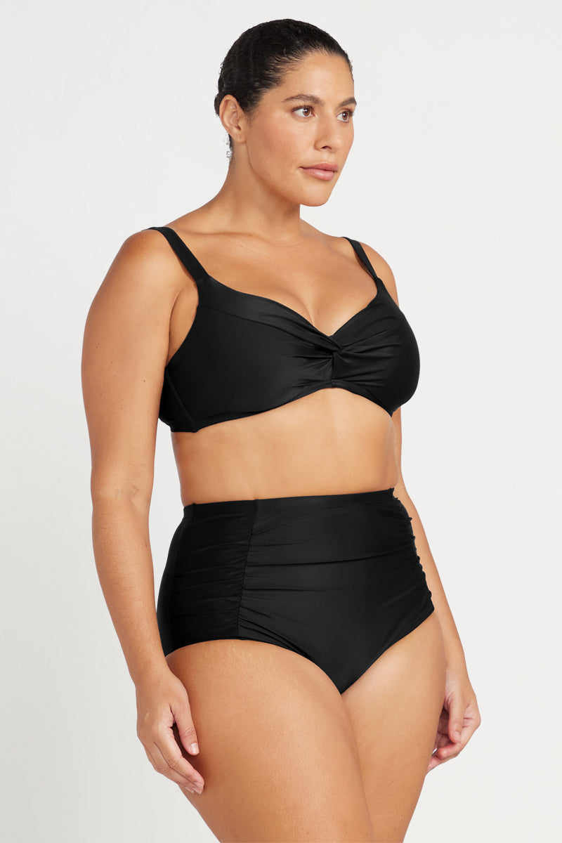 Our Botticelli swim pant is a high waist, moderate bottom coverage style designed to perfectly fit your curves. This swim pant has 360 degree powermesh lining and ruching in the side panels, to flatter and control your figure.