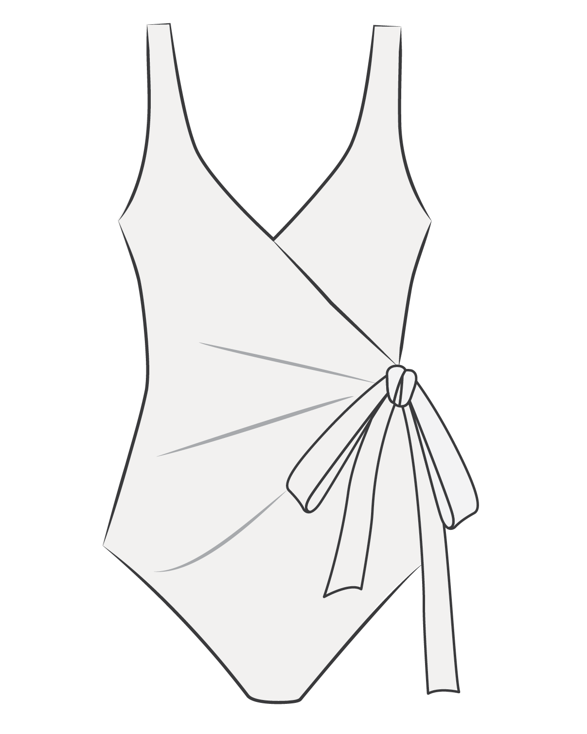 Hayes is a beautifully sculpted feminine wrap-around style designed to flatter your curves. Designed with a hidden shelf bra, removable soft foam cups and an underwire to fit and support a D to DD cup. This one piece swimsuit has a cross over design with a side tie that can be knotted or tied in a bow.