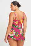A-line dress - This Delacroix swimdress shape is a waist defining A-line design. This very flattering flared A-line dress falls softly around your hips creating the perfect curve fit or plus size swimdress silhouette.