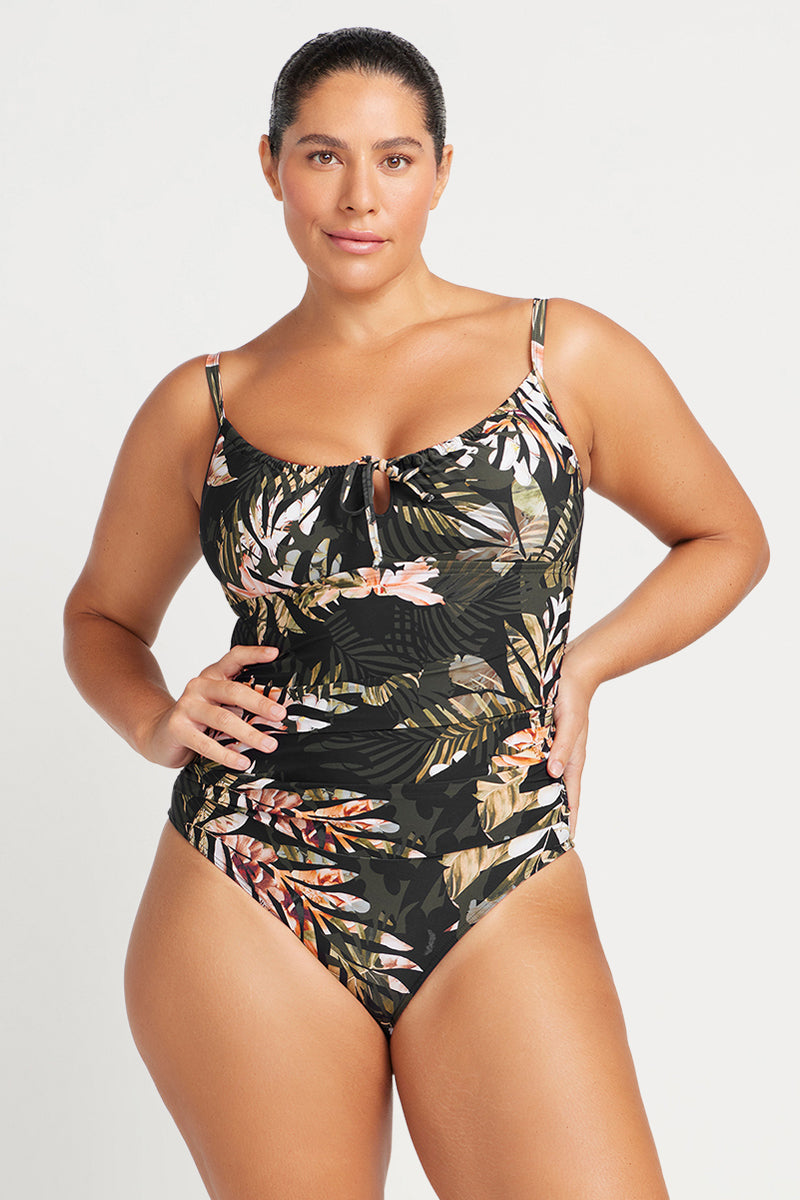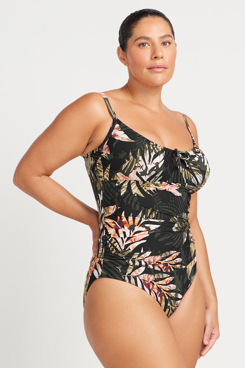 Drawstring Bust Detail - Our Degas curve fit and plus size swimsuit has a drawstring feature on the bust that allows you to tailor your perfect fit! Simply tie the drawstring tighter for a smaller bust
