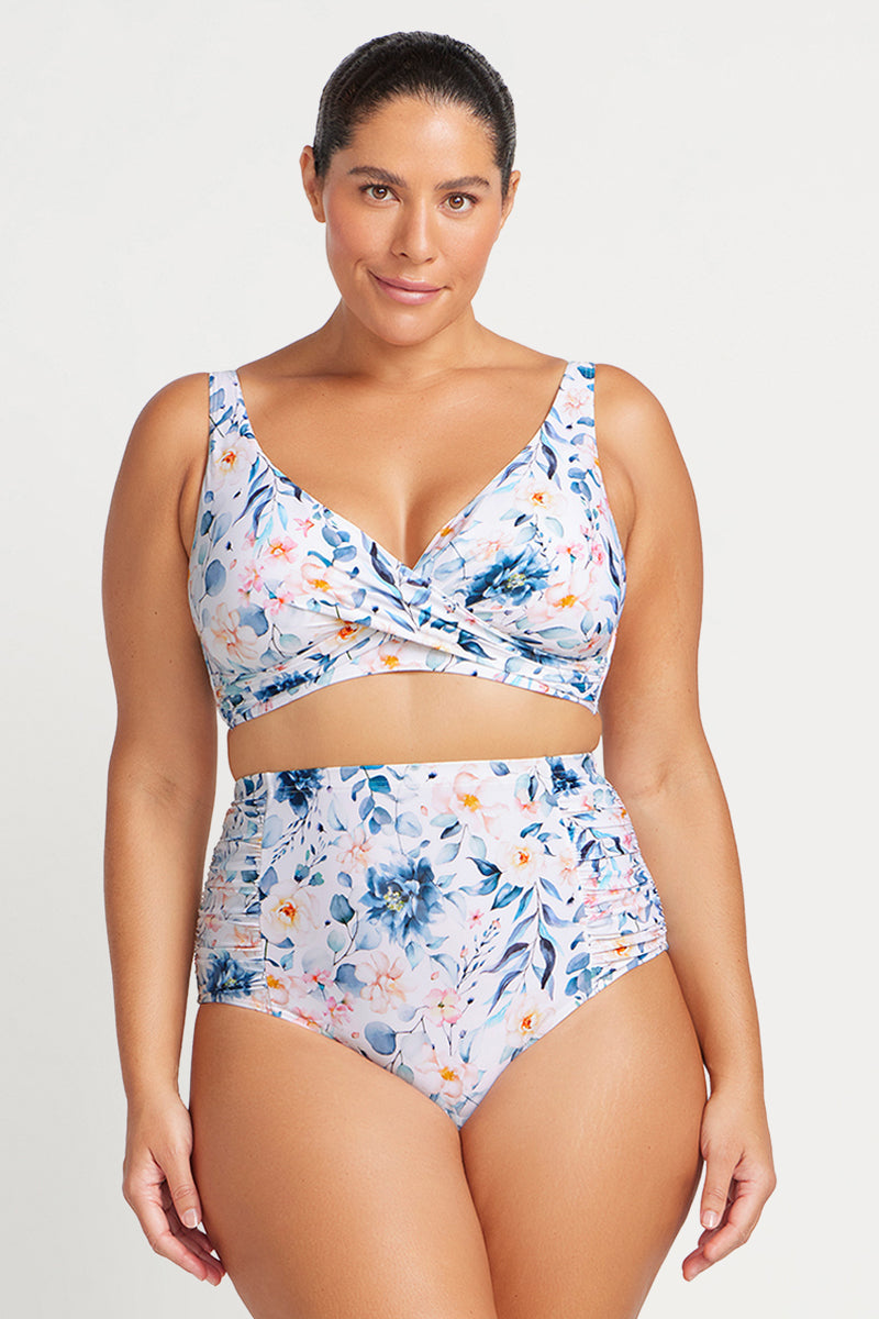 Cross over front - The front of this curvy swimsuit is a cross over design that flatters the shape of your bust and adds extra wirefree support.