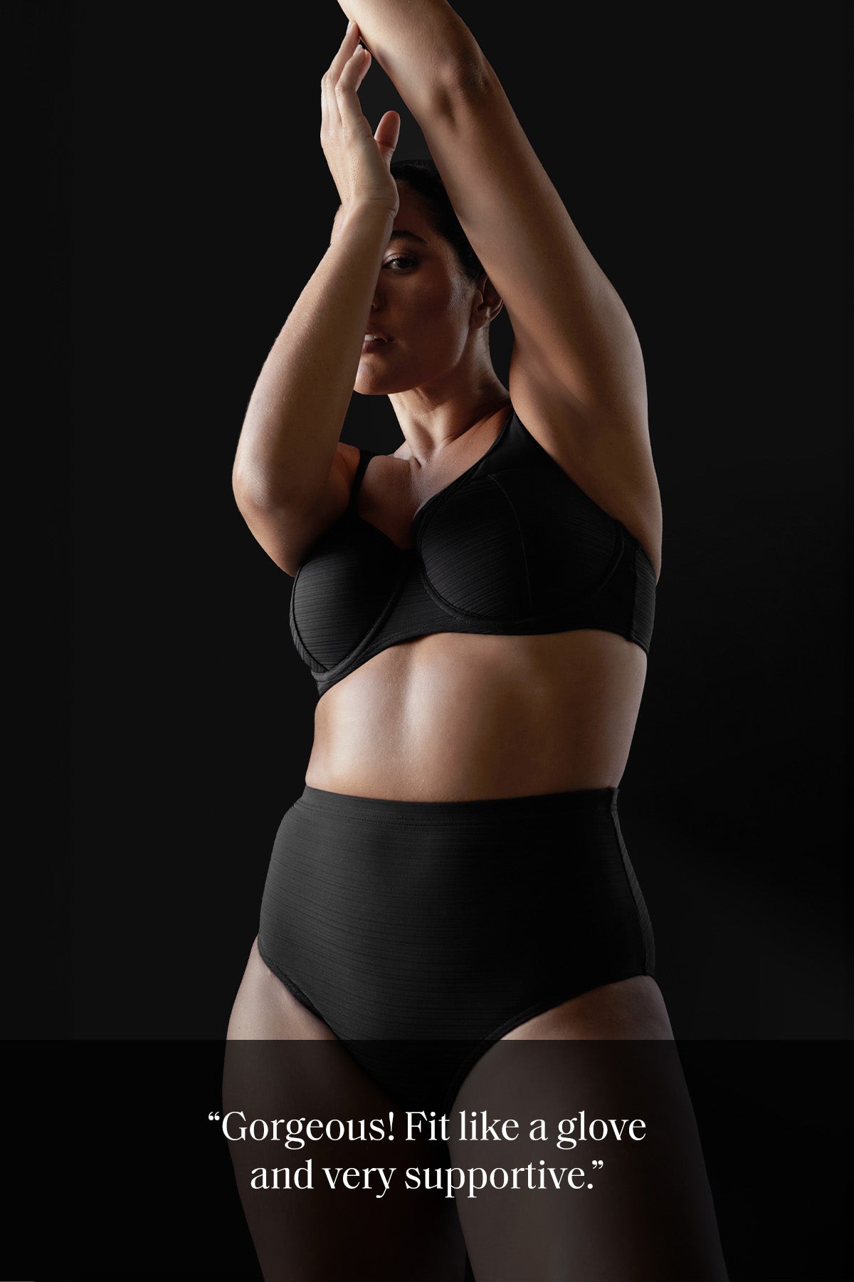 Artesands fits your curves. Show off in Artesands Giotto captivating bikini top, the ultimate curve enhancer. This curve fit and plus size bikini top has underwire support to fit a D cup to DD cup, and secured foam cups for body sculpting confidence. Our Artesands Giotto bikini swimsuit has a contrast paneling detail on the bust. Giotto curve fit and plus size bikini top has powermesh back wings to support the upper back and follow through to the strong back clip.